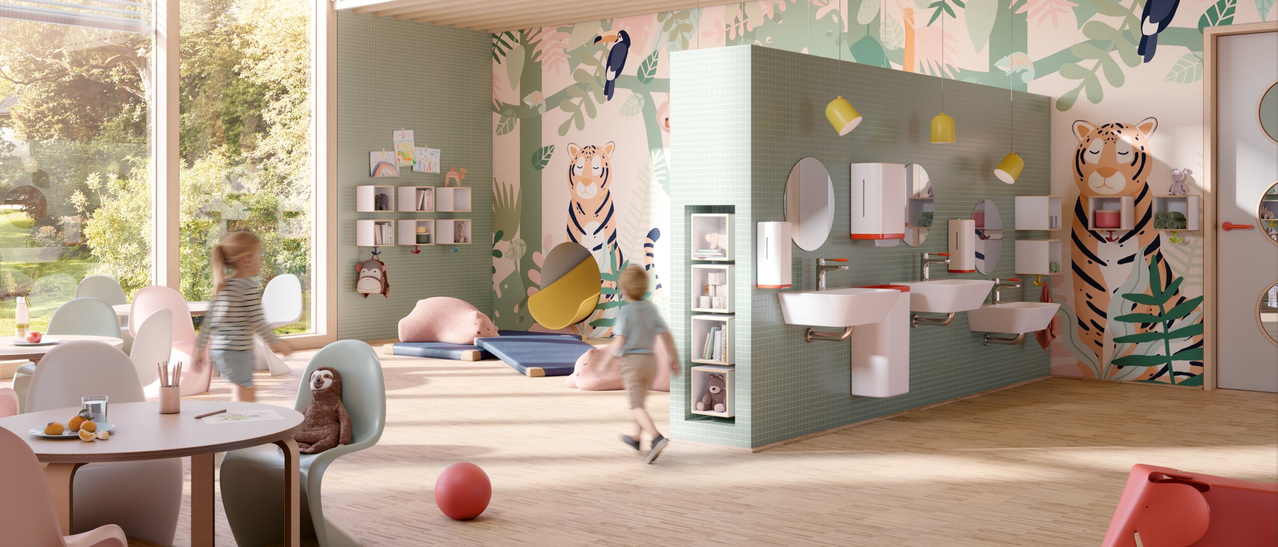 Menschen mit Kindern im Kindergarten fürchten die kalte Jahreszeit – eine Krankheit folgt der nächsten. Mit den richtigen Maßnahmen und Einrichtungsgegenständen leisten Sie als PlanerInnen einen wichtigen Beitrag zur Körper- und Händehygiene und so zur Gesundheitsprävention.