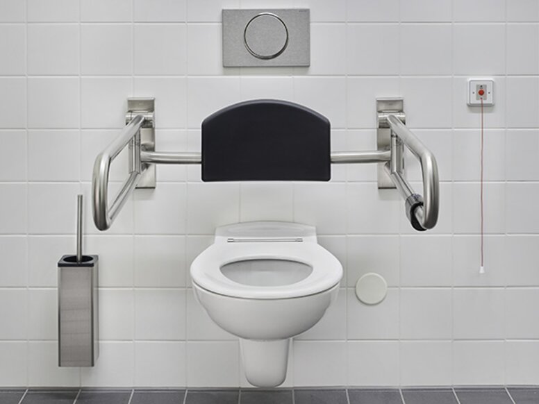 The folding support handles of Series 805 Classic are made of matt stainless steel and have many advantages: The material is particularly robust and easy to clean. The stable construction offers protection against vandalism and misuse as well as safe use. Especially in public areas, it is important to provide access to public life without barriers for all people, regardless of their physical conditions.