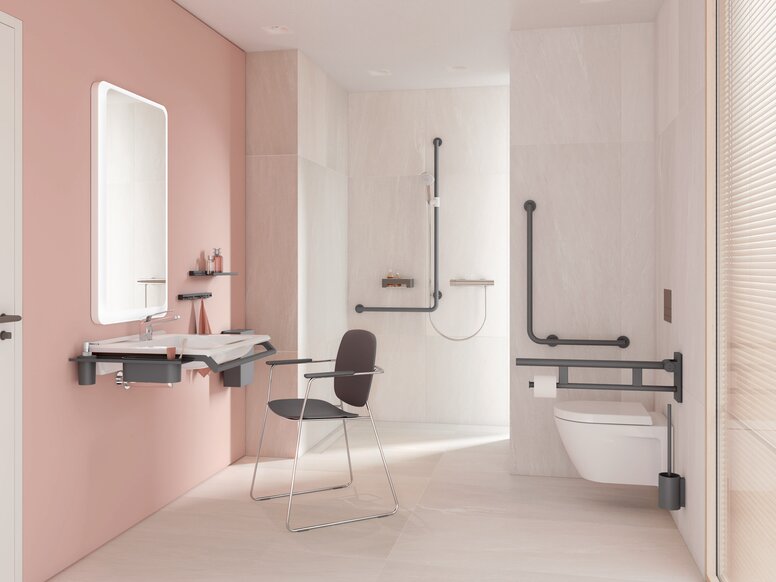 HEWI is committed to universal design and has been successfully developing products that focus on people and their individual needs for decades. Intelligent functions and consistent design form a single unit at HEWI. Excellent design, high-quality designs and well thought-through functions are the hallmarks of HEWI's sanitary systems and ranges. Comfort aspects and accessibility are integrated into every system at HEWI so that cross-generational use is possible.