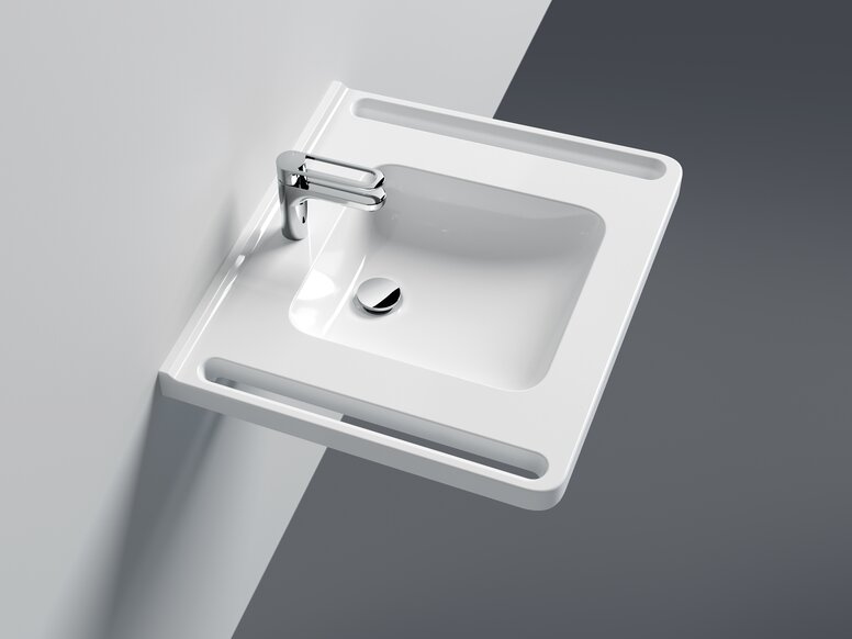 Des modèles avec des options de maintien intégrées, des versions hygiéniques avec un bord d'attaque et même des solutions à longueur variable vous offrent un large éventail de possibilités de conception des équipements. Grâce à leur profondeur, les lavabos sans barrière peuvent être utilisés de manière flexible. Ils peuvent être utilisés aussi bien en position debout - même avec des béquilles ou un déambulateur - qu'en position assise avec un fauteuil roulant.
