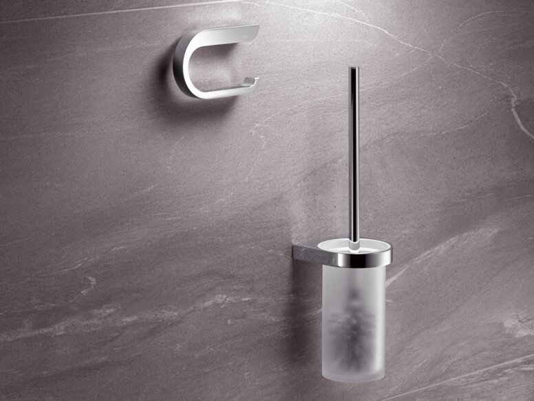 Voor de uitvoering van dit ontwerp is systeem 100 ideaal. Het is doordacht tot in het kleinste detail. De sanitaire accessoires overtuigen door hun minimalistische vormtaal, slimme functies, hoog gebruiksgemak en het gebruik van hoogwaardige materialen. Dit alles maakt van systeem 100 de perfecte oplossing voor de hotelbadkamer. De producten zijn verkrijgbaar in edel chroom met inzetstukken van gesatineerd kristalglas.