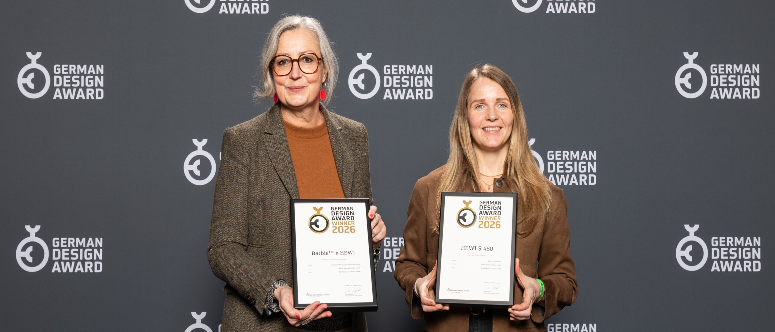 Kampanię dla Barbie™ × HEWI uhonorowano nagrodą German Design Award 2026 - zwycięzcą w kategorii Excellent Communications Design - Integrated Campaigns and Advertising za silny język wizualny i konsekwentne komunikacyjne realizowanie tematów itegracjiwłączenia, różnorodności i jakości designu.